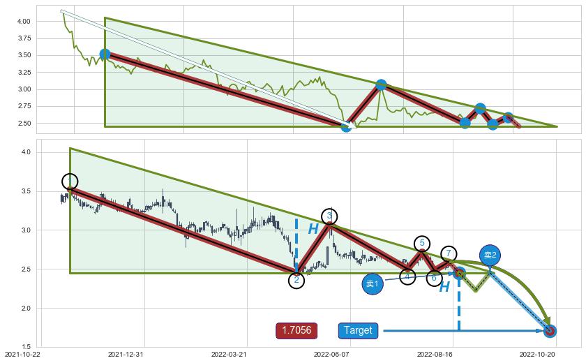 ➢ 最小【整理】第一目标价格→(2022-10-20: 1.7056 )