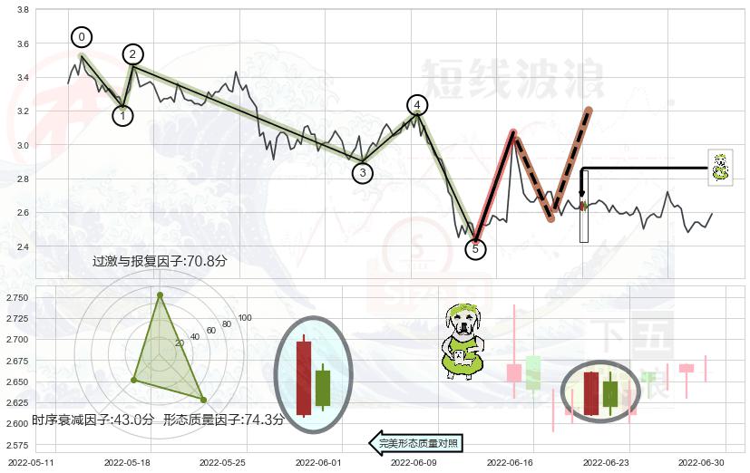 ➢ 🕰 价格走势在2022-06-13至2022-06-14期间形成阳包阴形态,残存影响值:3.16