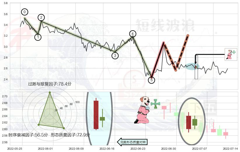 ➢ 🕰 价格走势在2022-07-25至2022-07-25期间形成看涨(低位)倒锤头线,残存影响值:2.82