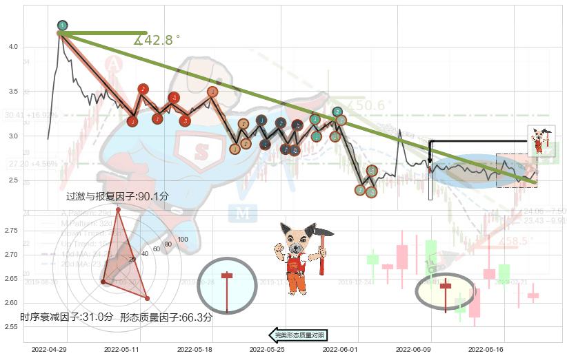 ➢ 2021-10-14-2022-05-20下跌趋势存在反转上涨[机会],虽然原下跌趋势的阻力位(2.473)已被突破,但其阻力效果尚存,原下跌趋势角度: 42.8˚