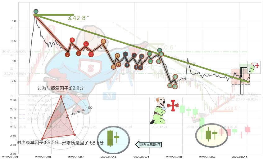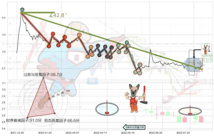 ➣ 【未确认突破,预测即将形成突破】下降三角形整理起点:2021-11-11, 预测突破点:2022-08-19,形态共190交易日