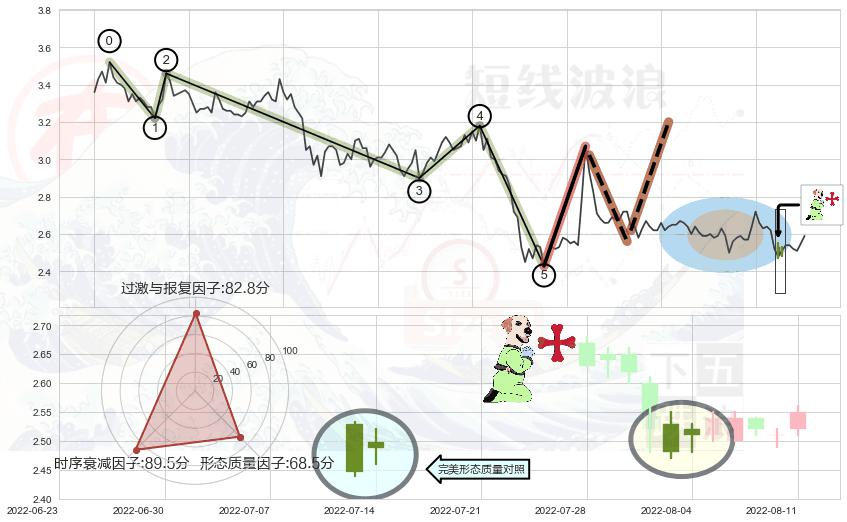 ➢ 🕰 价格走势在2022-07-25至2022-08-01期间形成射击之星形态,残存影响值:-7.49