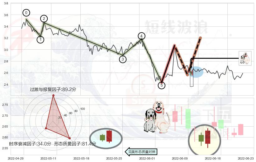 ➢ 🕰 价格走势在2022-06-02至2022-06-06期间形成底部尽头线(上山虎),残存影响值:2.45
