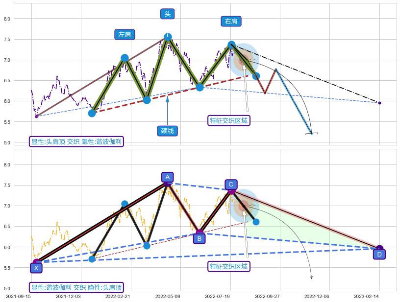 ➢ 头肩顶与谐波伽利信号事件周期长度级别相同,同周期信号事件