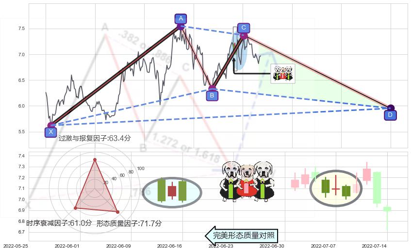 ➢ 🕰 价格走势在2022-07-06至2022-07-08期间形成两黑夹一红,残存影响值:-3.42