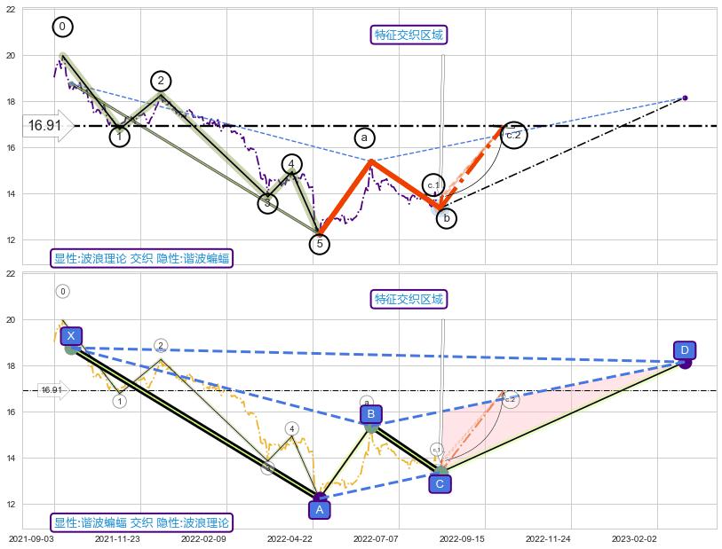 ➣ D点拟合预测价格18.14,距离最后交易收盘价格13.84相差 +31.08%