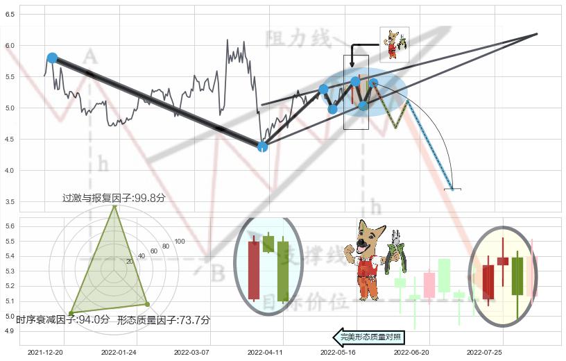 ♘ 支撑价格位4.82,可信任强度96.76%,距离最后交易2022-08-12形成的收盘价格5.40相差 -10.71%