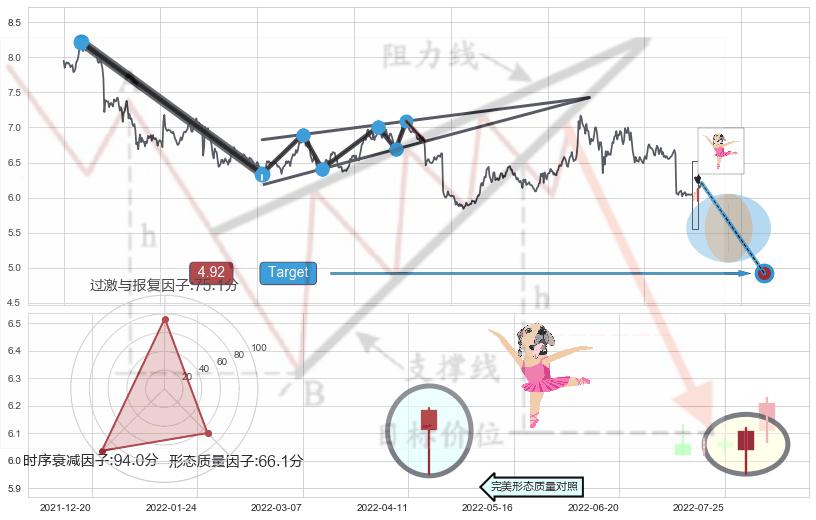 ♘ 阻力价格位6.25,可信任强度65.27%,距离最后交易2022-08-12形成的收盘价格6.21相差 +0.71%