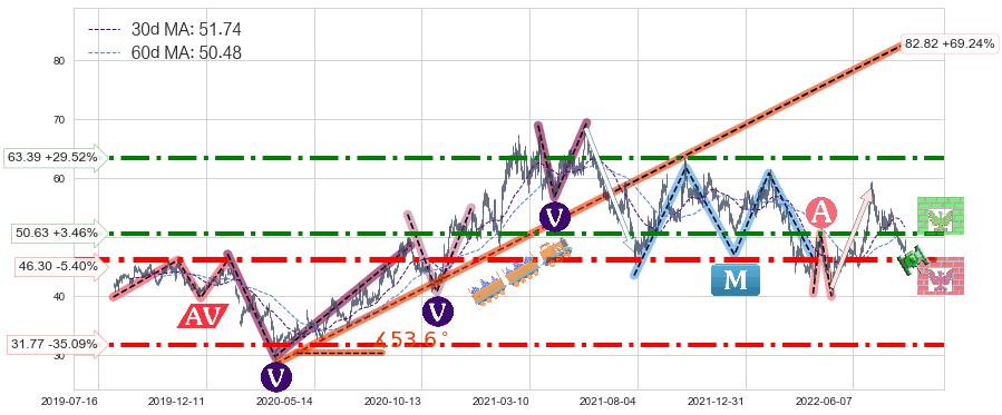♘ 阻力价格位50.63,可信任强度72.21%,距离最后交易2022-08-12形成的收盘价格48.94相差 +3.46%