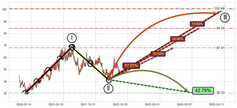 ➢ AI预测: 假定反转继续,第❸价格目标位置(2023-02-08, 68.58)