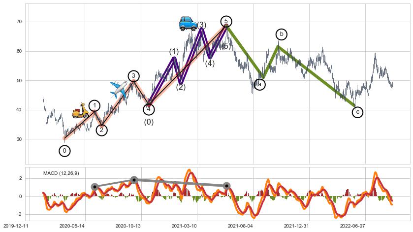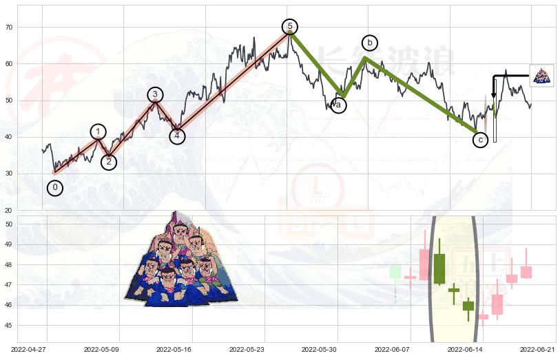 ➣ ['回调abc识别为: 【锯齿型调整浪】 ', '锯齿型:子浪535结构 ⓑ点振幅较小,ⓒ点继续发力远超ⓐ点结束位置']
