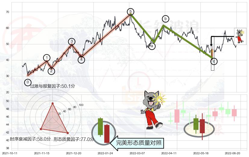 ➢ 下跌孤独十字星 🔜 波浪理论击穿破位C点继续下跌 综合量化分数:47.72 【中性】