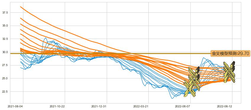 ➣ 120小时均线于(2022-06-13: 25.20)形成【金叉】基于【金叉历史模型】预测金叉后最高波峰价格: 28.38, 金叉后最高价格29.90,已经上涨超出预测最高波峰价格, 预期回调