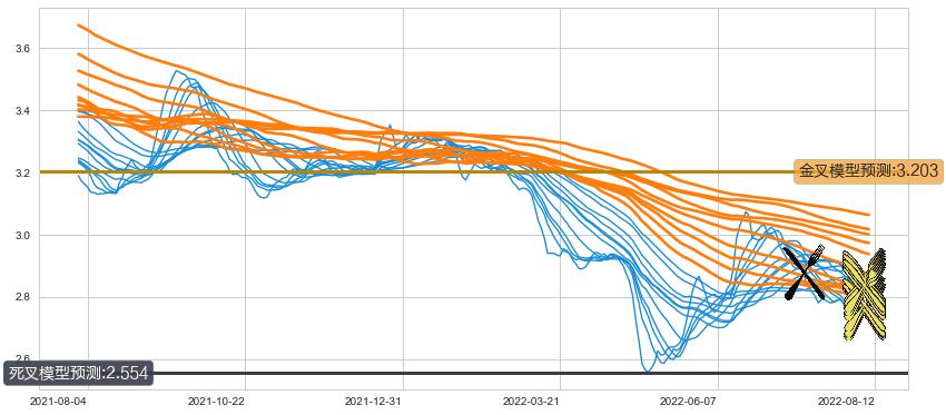➢ 35小时均线于(2022-08-10: 2.844)形成【金叉】基于【金叉历史模型】预测金叉后最高波峰价格: 3.262, 金叉后最高价格2.870,尚未达到预测最高波峰价格, 预期继续上涨