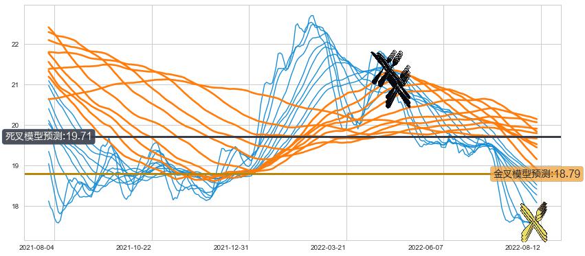➣ 60小时均线于(2022-04-19: 21.42)形成【死叉】基于【死叉历史模型】预测死叉后最低波谷价格: 19.81, 死叉后最低价格17.17,已经下跌超出预测最低波谷价格, 预期反弹