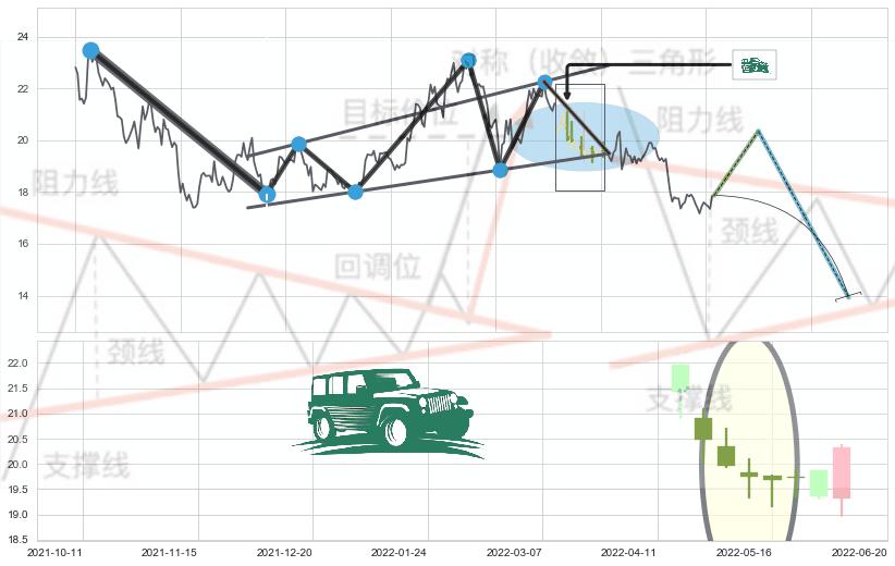 ➣ 下降对称三角整理:关键支撑位被击穿 → 猜想形成趋势持续下跌 → 风险信号 → 大趋势均值回复