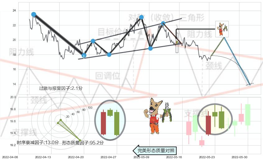 ➢ 🕰 价格走势在2022-05-20至2022-05-24期间形成下跌镊子线(n形磁铁),残存影响值:-0.44