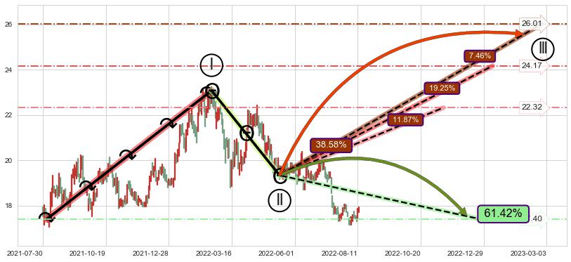 ➣ AI预测: 假定反转启动后, 第❸目标位置(2023-06-07, 23.08)