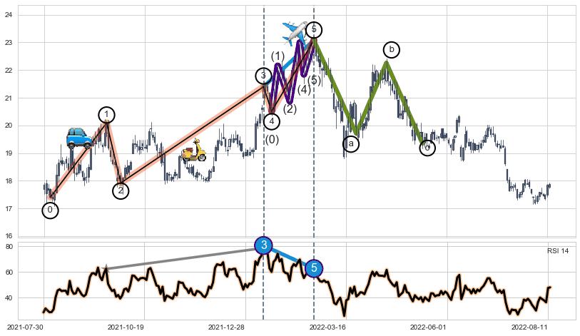 ➢ ['回调abc识别为: 【规则】平台型调整浪 ', '规则平台型:子浪335结构,ⓐⓑ振幅接近,ⓒ点稍微超过ⓐ点结束位置']