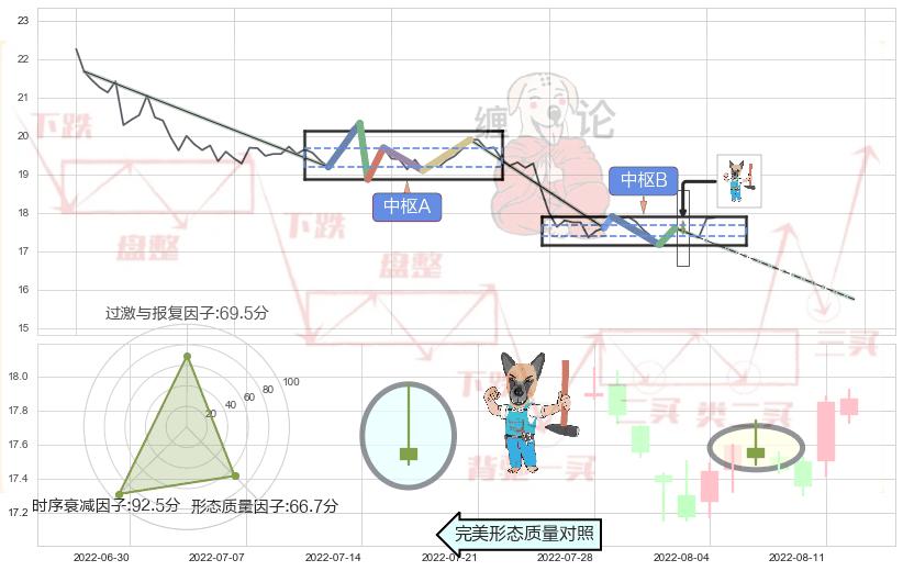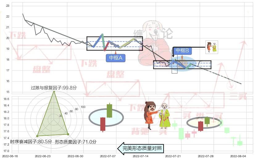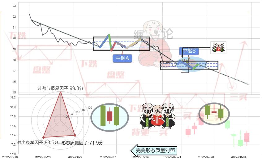 ➣ 【中枢B】:2022-07-25-2022-08-05,中枢由4笔构成,共10交易日, ZG=17.60, ZD=17.60