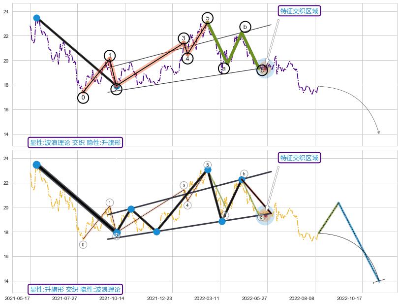 ➢ 波浪理论与升旗形信号事件周期长度级别相同,同周期信号事件