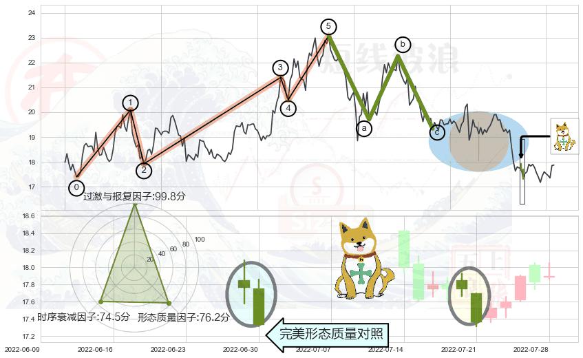 ➢ 锤头线(锤子线) 🔜 波浪理论下跌浪:浪5反弹拐点 综合量化分数:53.11 【中性】