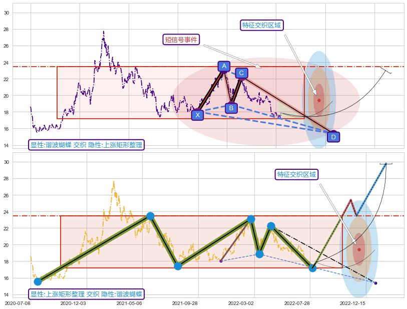 ➢ 谐波蝴蝶属【短级别信号事件】上涨矩形整理属【长级别信号事件】长短周期组合信号事件, 短长事件长度比34.47%