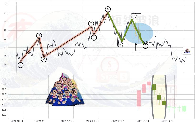 ➢ 循环浪继续向上【最低】位置(2022-11-15, 22.32),匹配聚类样本比例30.77%, 可能性概率11.87%