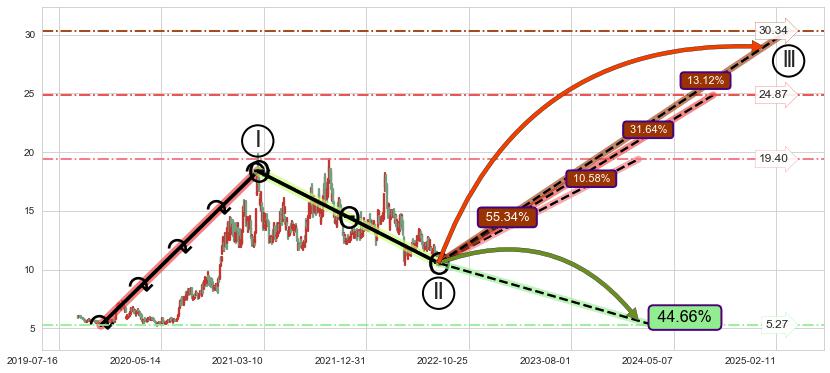 ➢ AI预测: 假定反转启动后, 第❷目标位置(2023-03-31, 15.79)