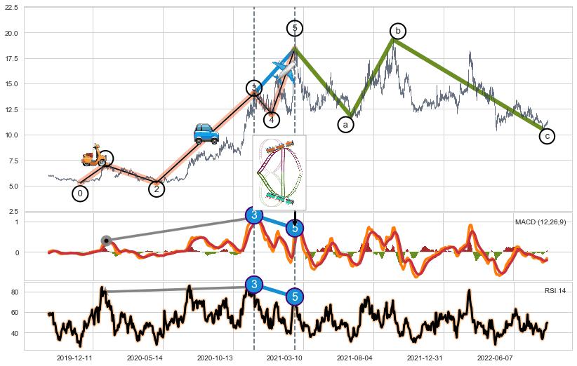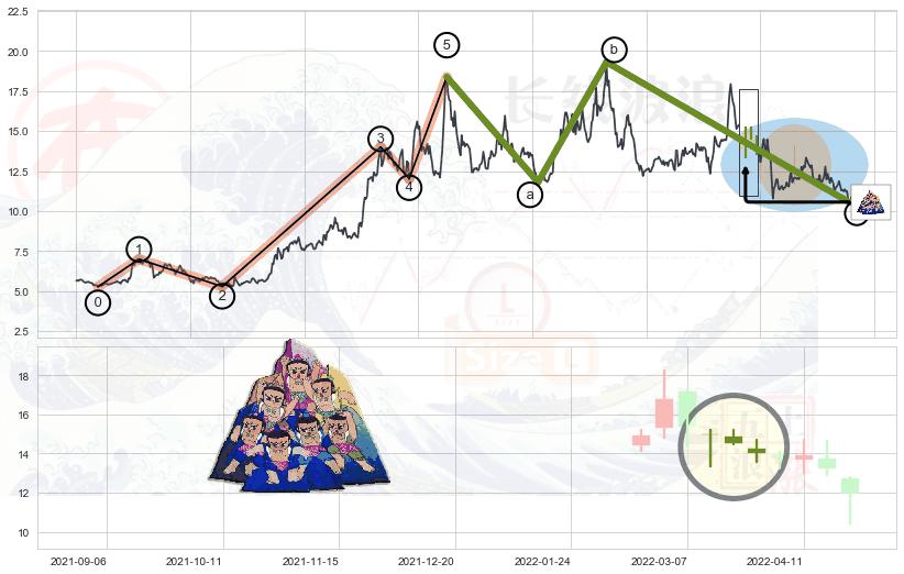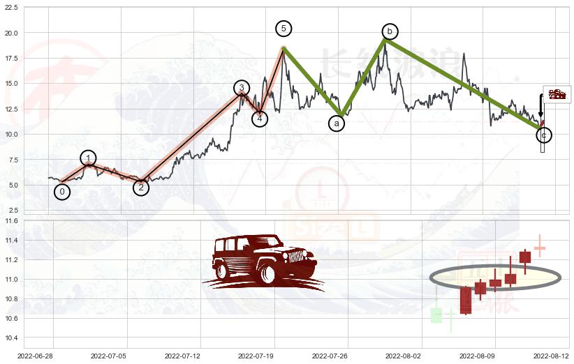 ➣ 波浪理论:猜想达到c点后小回调终止反转上涨 → 上涨 → 【拐点】临近 → 阶段均值回复结束后继续大周期趋势跟踪