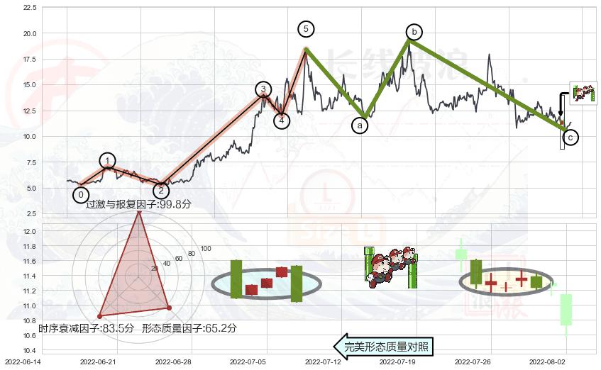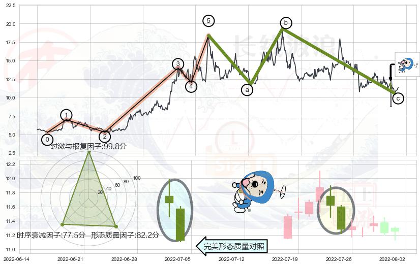 ♘ 支撑价格位11.13,可信任强度74.17%,距离最后交易2022-08-12形成的收盘价格11.33相差 -1.77%