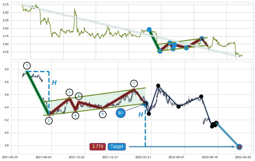 ➣ 最小中继整理跌幅→𝐇: 0.6800 (𝐇旗杆的长度:旗杆起点→顶点)
