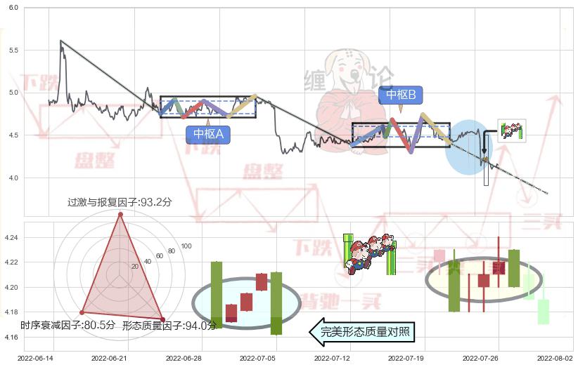 ➢ 下降三部曲(降势三鹤) 🔜 缠论中枢点破位中枢B支撑下拉 综合量化分数:42.92 【偏空】