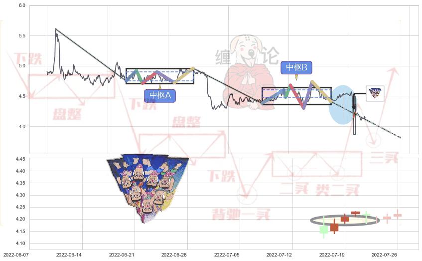 ➢ 【中枢B】:2021-11-30-2022-05-24,中枢由7笔构成,共115交易日, ZG=4.60, ZD=4.48