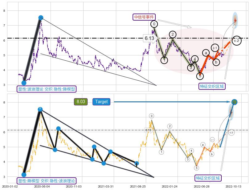 ➣ 曙光初现形态 + 波浪理论临近C点后续突破C上涨信号叠加后【目标达成率】极低,【看多】信号叠加【存续影响极大】