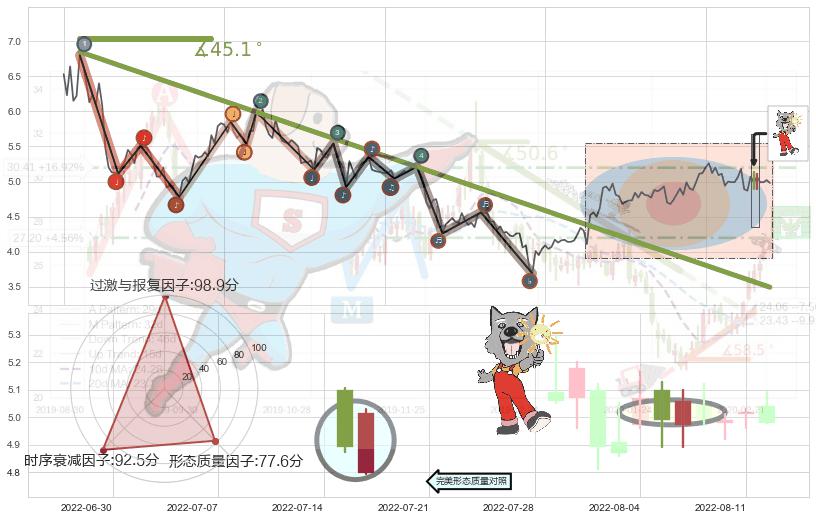 ♘ 阻力价格位6.43,可信任强度52.03%,距离最后交易2022-08-12形成的收盘价格4.98相差 +29.06%