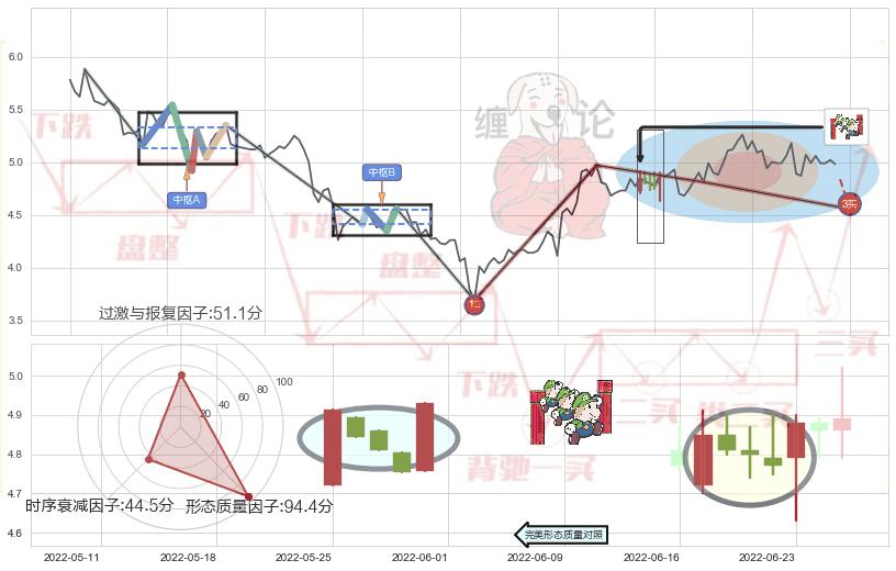 ➣ 【中枢B】:2022-03-22-2022-03-31,中枢由4笔构成,共8交易日, ZG=4.55, ZD=4.41