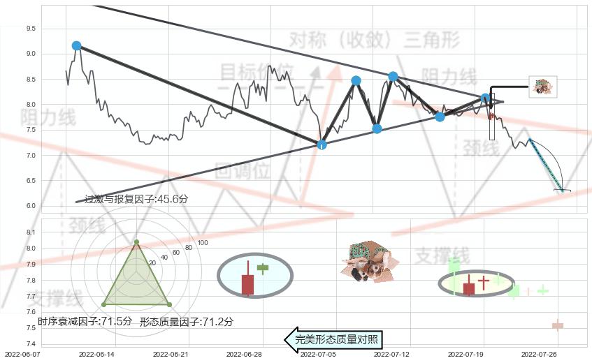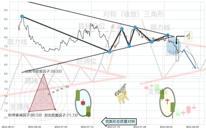 ➢ 【卖1】: 激进型 卖点→(2022-07-14: 7.98 )形成突破下降【对称】三角形整理【整理】形态