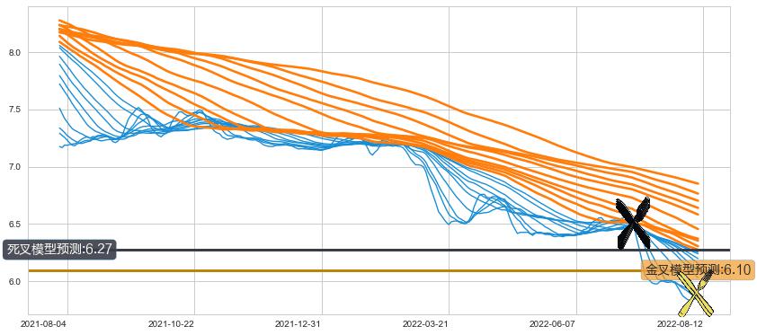 ➣ 70小时均线于(2022-07-07: 6.52)形成【死叉】基于【死叉历史模型】预测死叉后最低波谷价格: 6.23, 死叉后最低价格5.81,已经下跌超出预测最低波谷价格, 预期反弹