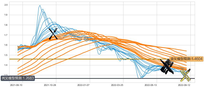 ➢ 13小时均线于(2022-06-28: 1.4023)形成【死叉】基于【死叉历史模型】预测死叉后最低波谷价格: 1.3361, 死叉后最低价格1.2800,已经下跌超出预测最低波谷价格, 预期反弹