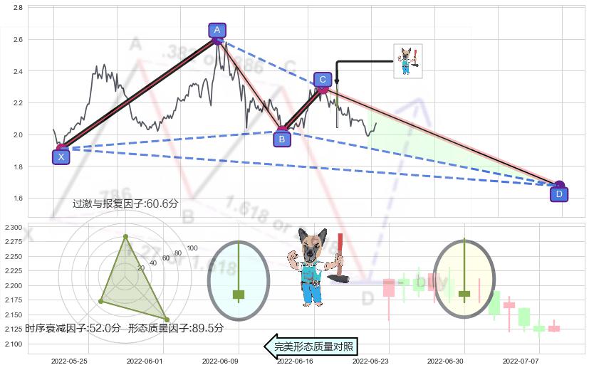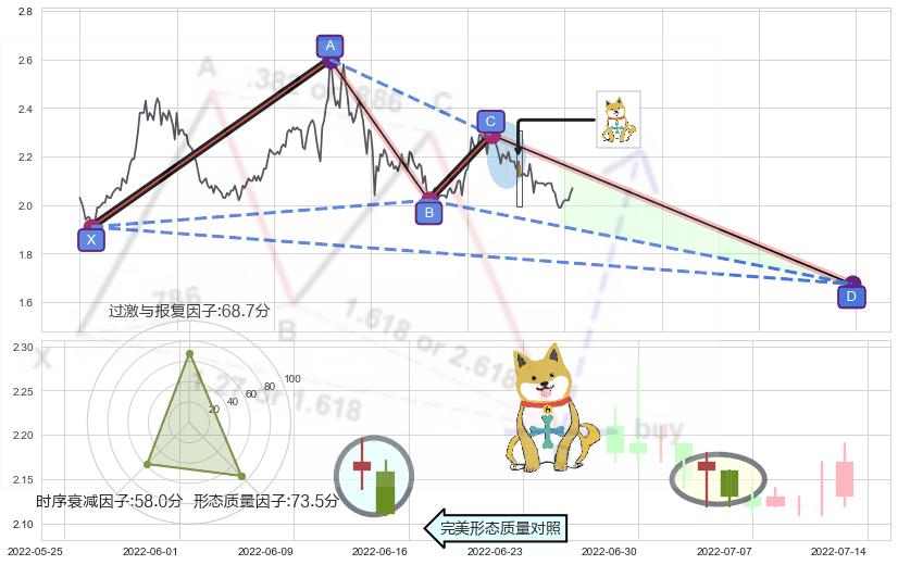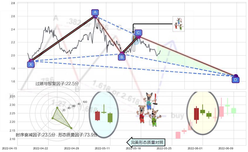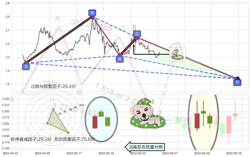 ➣ D点拟合预测价格1.6752,距离最后交易收盘价格2.070相差 -19.07%