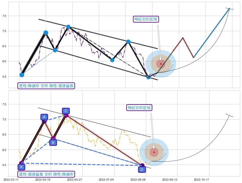 ➢ 降旗形与谐波鲨鱼信号事件周期长度级别相同,同周期信号事件