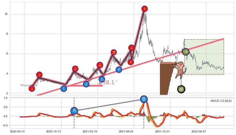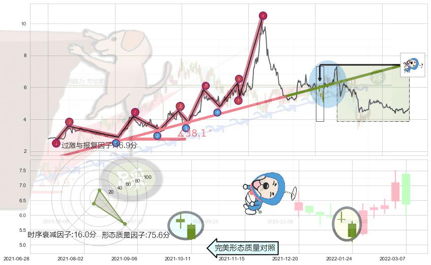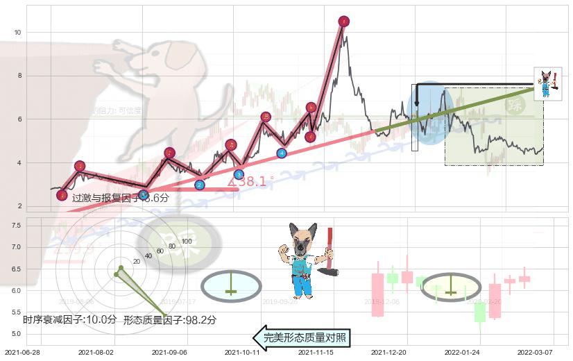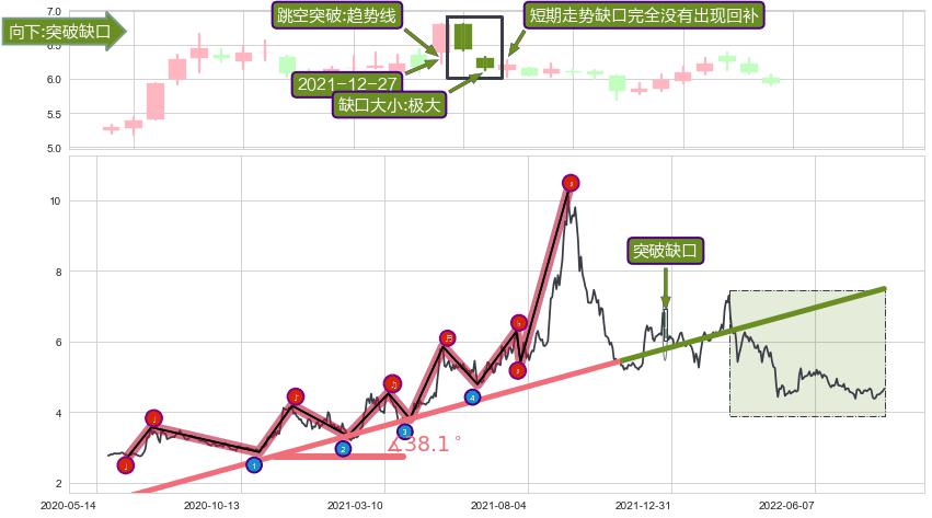 ➣ 2020-06-15-2021-11-15上升趋势存在反转[风险],其原上升趋势的支撑位(7.49)已破位[强阻力信号],原上升趋势角度: 38.1˚