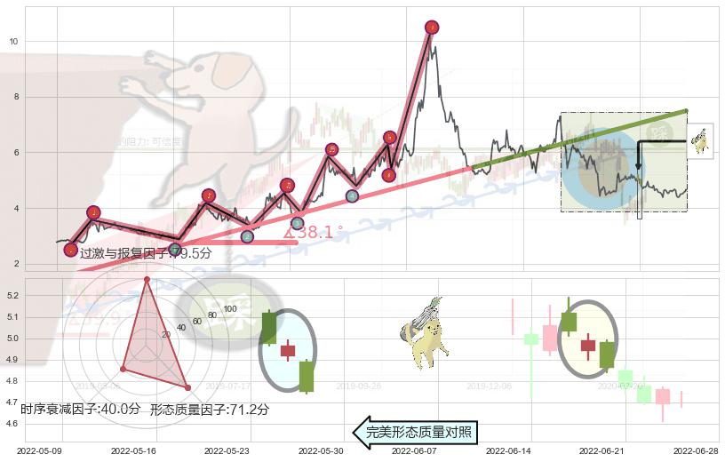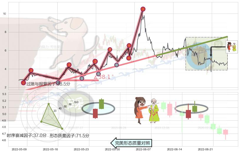 ➢ 🕰 价格走势在2022-06-16至2022-06-20期间形成空方炮,残存影响值:-1.26