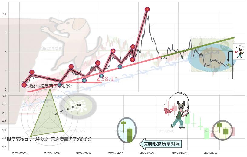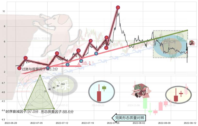 ♘ 阻力价格位5.37,可信任强度81.84%,距离最后交易2022-08-12形成的收盘价格4.66相差 +15.19%