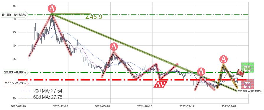 ♘ 阻力价格位29.83,可信任强度78.07%,距离最后交易2022-08-12形成的收盘价格27.91相差 +6.88%