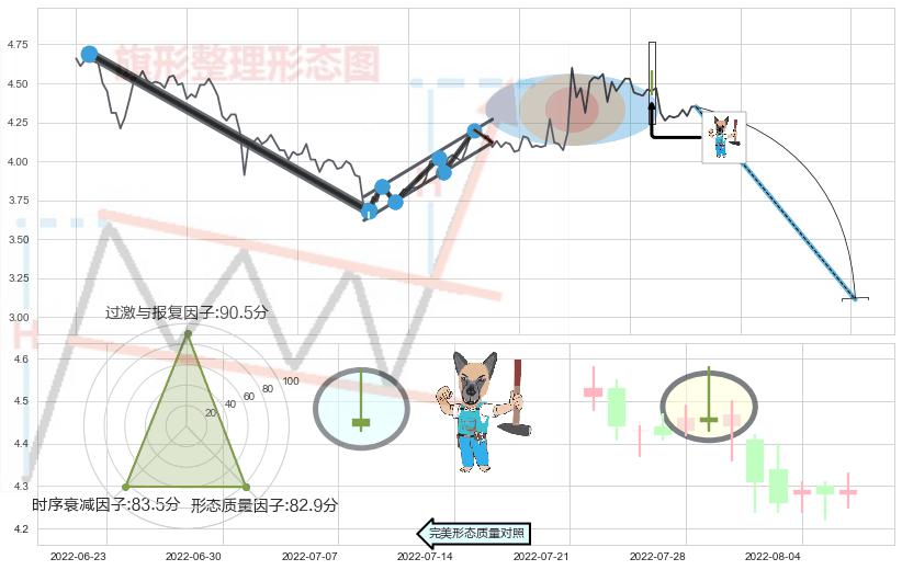 ➢ 看跌(高位倒锤头)流星线 🔜 升旗形支撑破位转换阻力下跌 综合量化分数:38.74 【偏空】