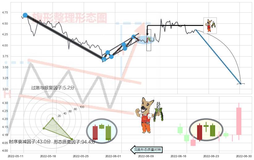➢ 【卖1】: 激进型 卖点→(2022-06-09: 4.12 )形成突破升⚑旗形【整理】形态