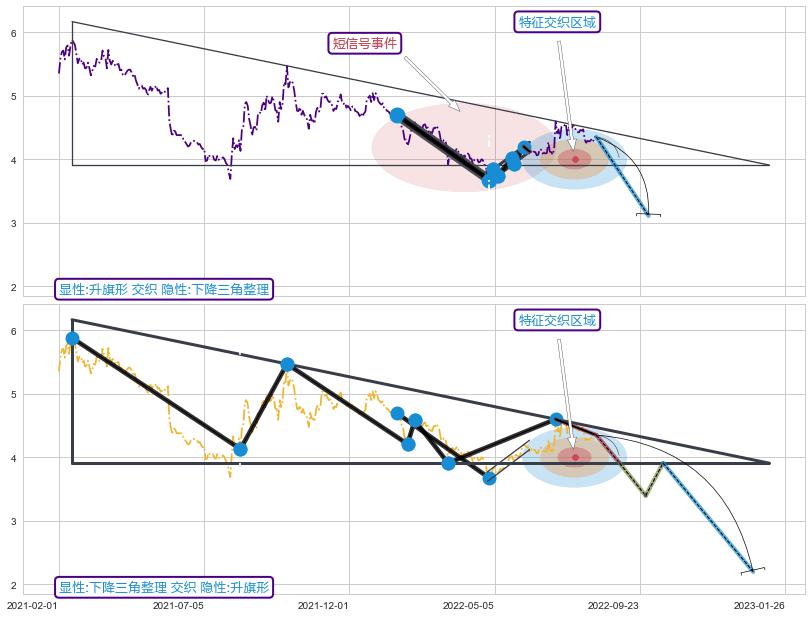 ➢ 升旗形属【短级别信号事件】下降三角整理属【长级别信号事件】长短周期组合信号事件, 短长事件长度比25.41%