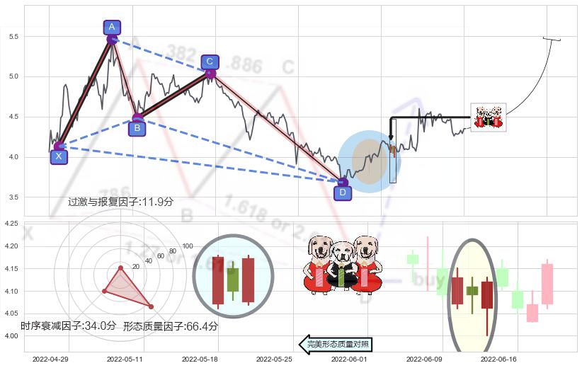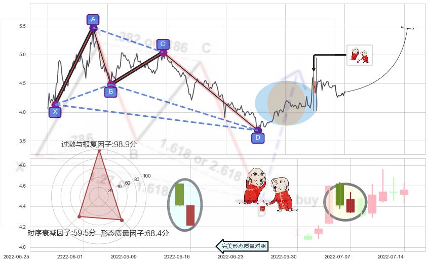 ➢ 曙光初现形态 🔜 谐波蝴蝶d拐点上涨支撑 综合量化分数:53.89 【偏多】